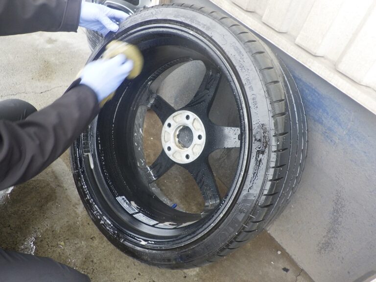 ハブ部分の錆取り、防錆処理を行いホイールは、裏も表も洗います。