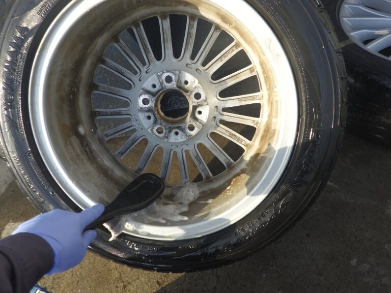 行いキャリパーまわりの洗浄とシールからのフルード滲みの点検、ハブ部分の錆取り防錆処理を行いホイールは、