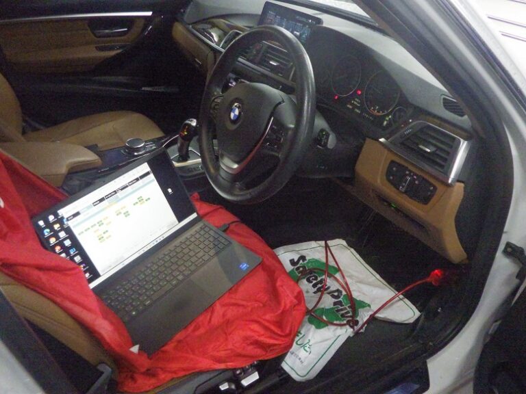 バッテリー診断を行いBMW専用テスターを車両に接続してコンピューター診断を行い