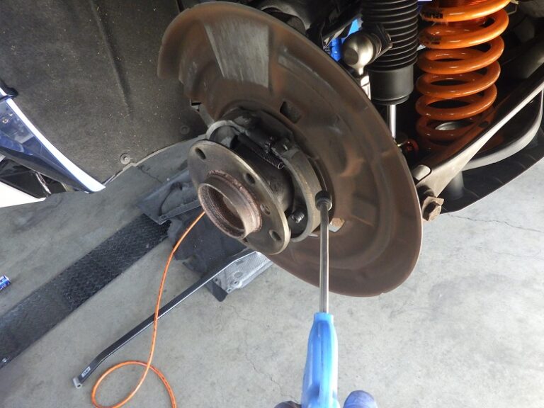 当店の車検整備においては、リアブレーキローターは、取り外してサイドブレーキシューまわりの洗浄と