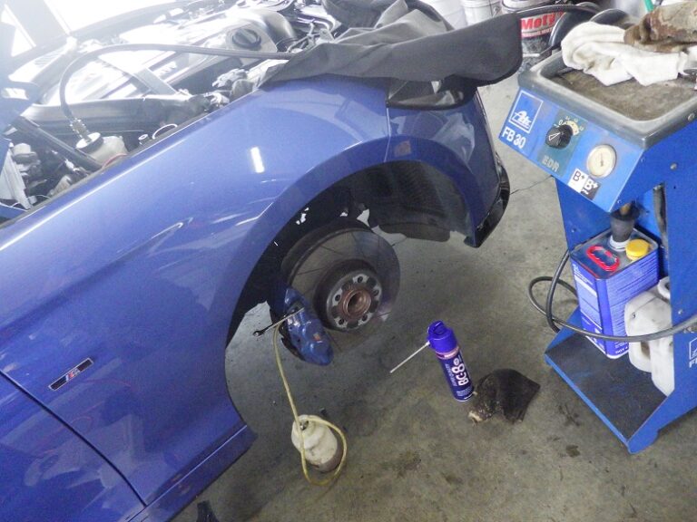 行いキャリパーまわりの洗浄とシールからのフルード滲みの点検、ハブ部分の錆取り防錆処理を行いホイールは、