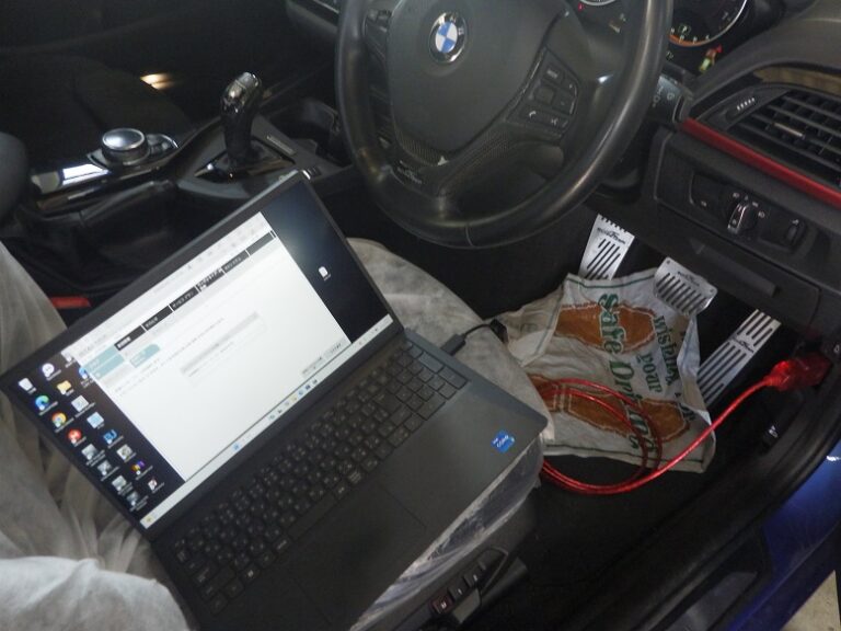 バッテリー診断を行いBMW専用テスターを車両に接続してコンピューター診断を行い