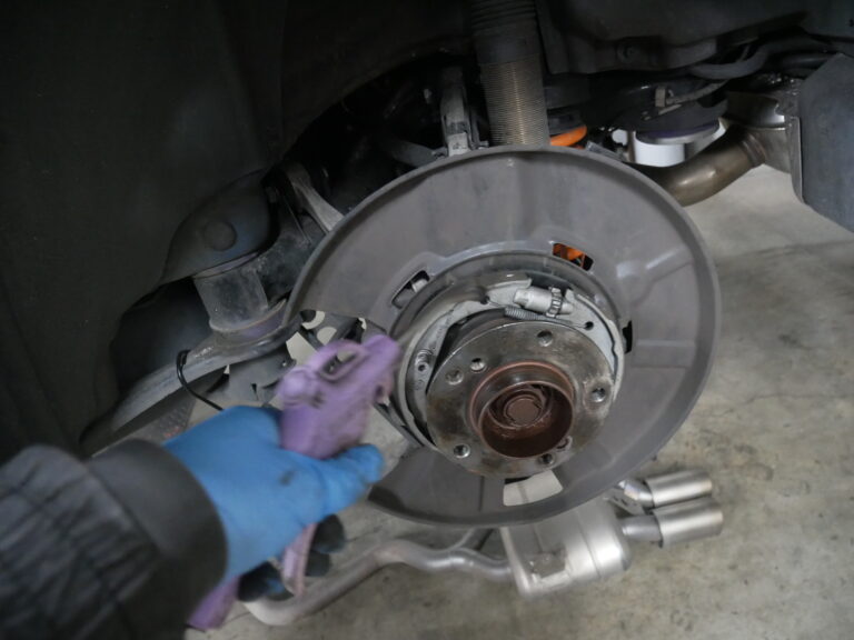 行っているお客様の車両です。当店の車検整備においては、ブレーキキャリパーまわりの洗浄とパッドは、前後とも