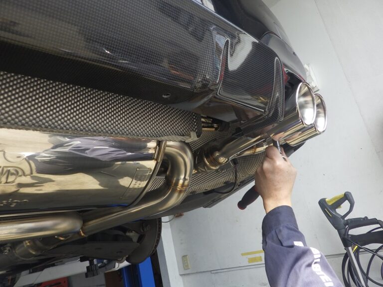 マフラーバルブコントローラー取り付けも行います。今回は、お客様のご希望でリアディフューザーも