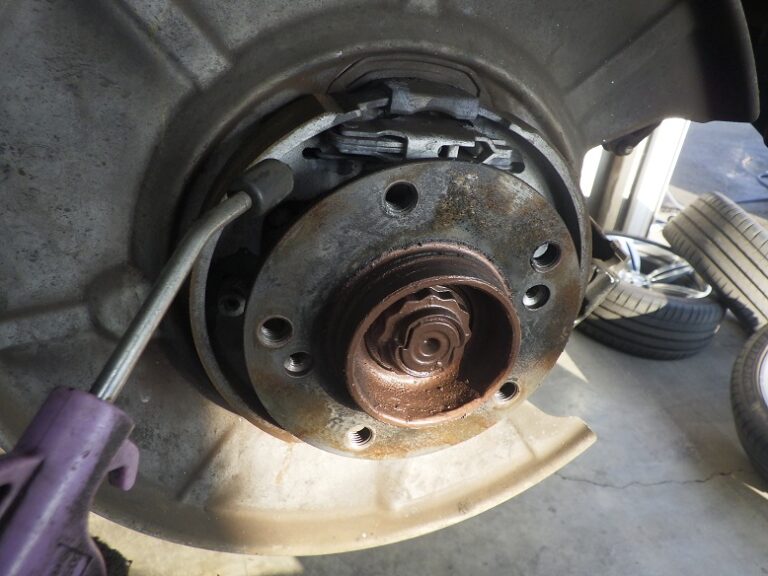 当店の車検整備においては、リアブレーキローターは、取り外してサイドブレーキシューまわりの洗浄と