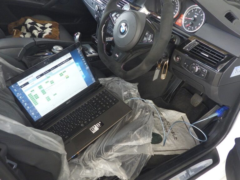 バッテリー診断を行いBMW専用テスターを車両に接続してコンピューター診断を行いエラーチェック、消去