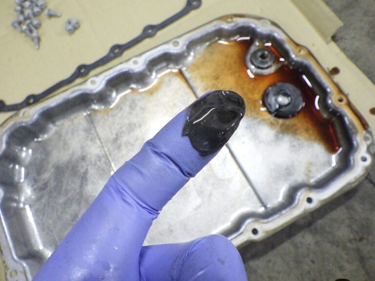 フィルター、オイルパンのボルトも同時に交換します。外したオイルパン内の磁石には、汚れた鉄粉が