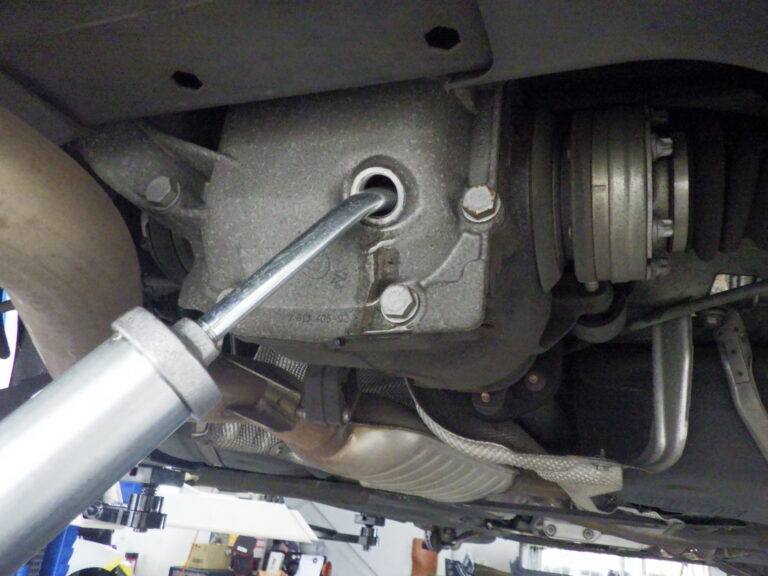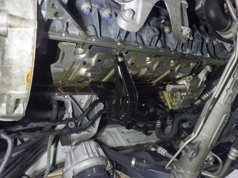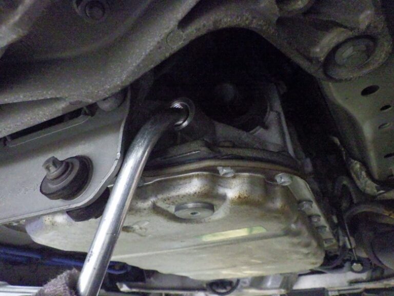 オイルパンを外す際には、フロントサブフレームも外すので漏れたオイルの汚れとサブフレームの汚れも