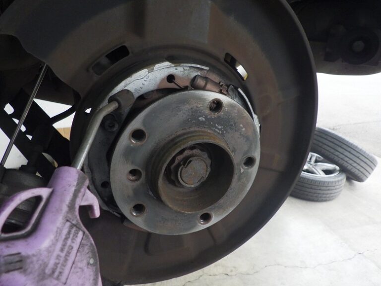 当店の車検整備においては、リアブレーキローターは、取り外してサイドブレーキシューまわりの洗浄と