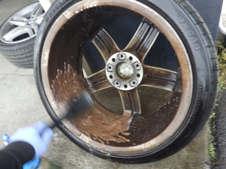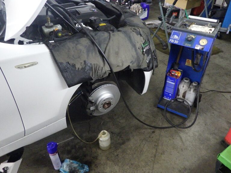 行いキャリパーまわりの洗浄とシールからのフルード滲みの点検、ハブ部分の錆取り防錆処理を行いホイールは、