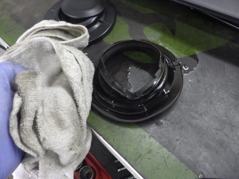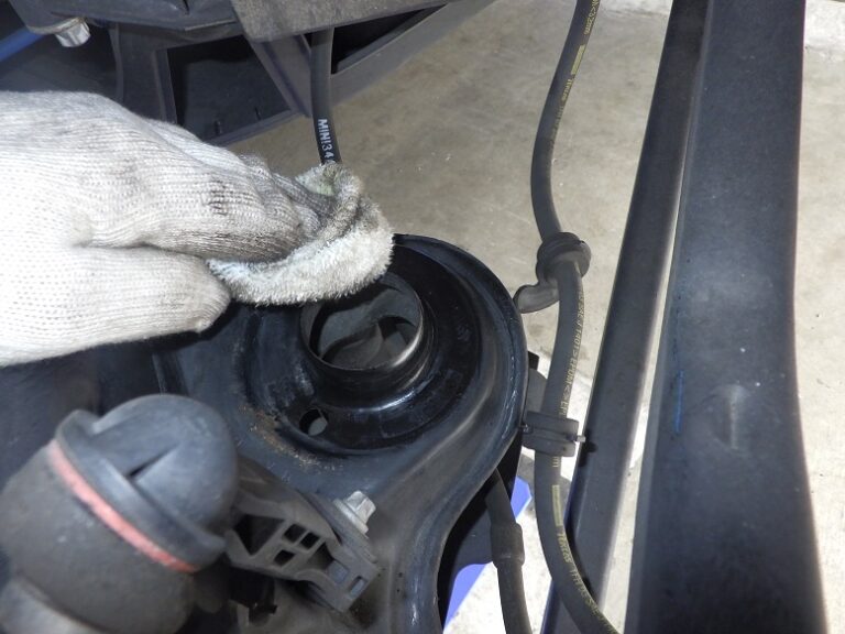 リアのアームのスプリングの取り付け部分に砂利が溜まるので全て除去してからスプリングを取り付けします。