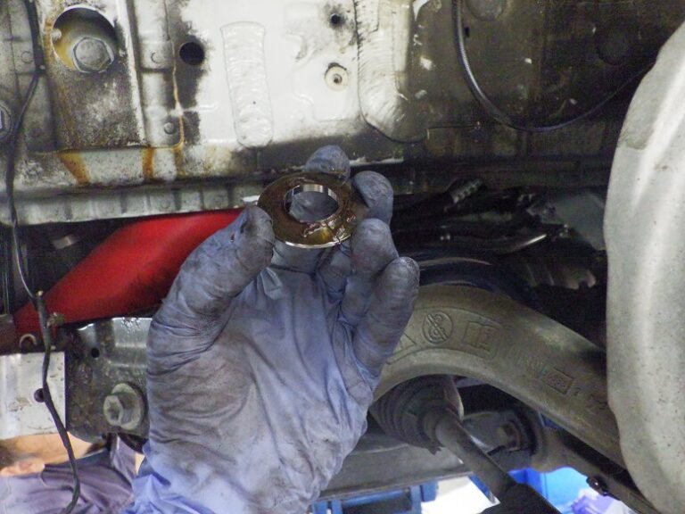 作業しました。まずは、リジカラ取り付けからです・・・リジカラは、ボディとサブフレームの間に挟み込むカラーの