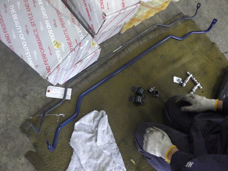 スタビライザーもサブフレームを半分おろして交換するので同時進行で作業します。arcスタビには、専用の