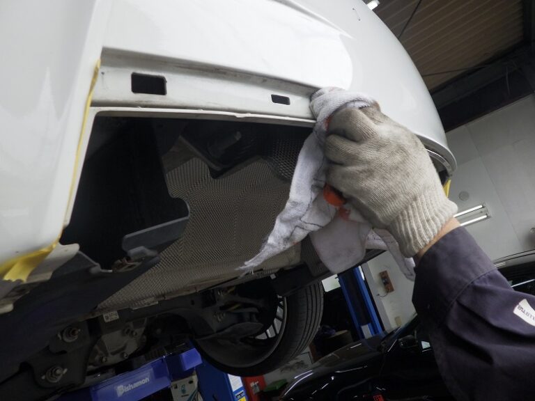 当店の提携の板金工場にてクリア塗装を行い取り付けしました。取り付けの際には、バンパー側のディフューザー