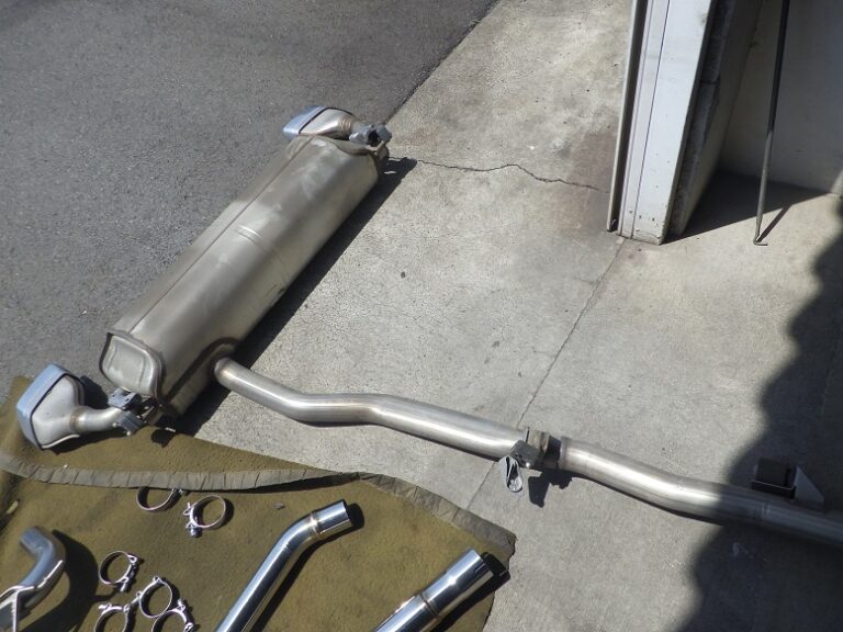 研磨してから社外品のマフラーを取り付けしております。外した純正マフラーは、こんな形状をしています。