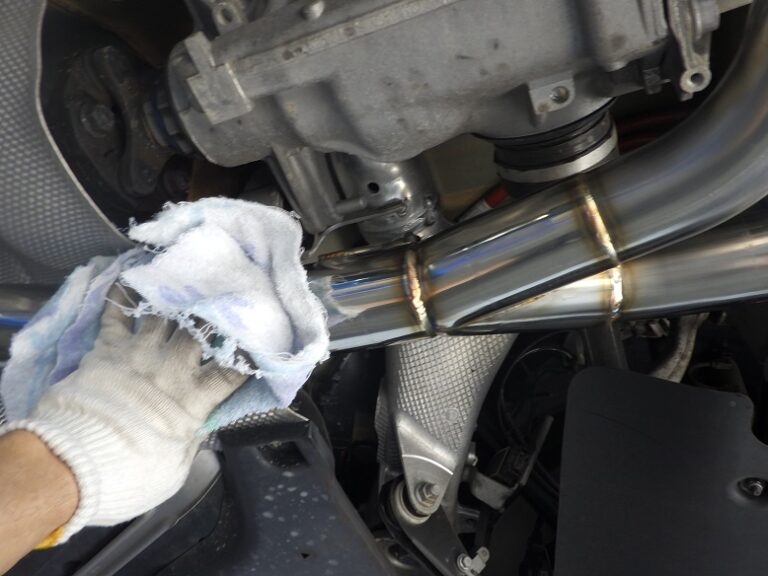 テールの位置調整を慎重に行い新品マフラー取り付け時に付いた手垢を綺麗に除去します。