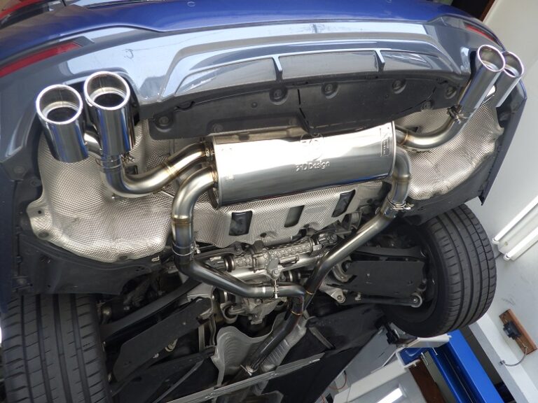 やはり4テールがお似合いの車両です。3Dデザインマフラーは、純正品よりも低音が効いてマフラー音に