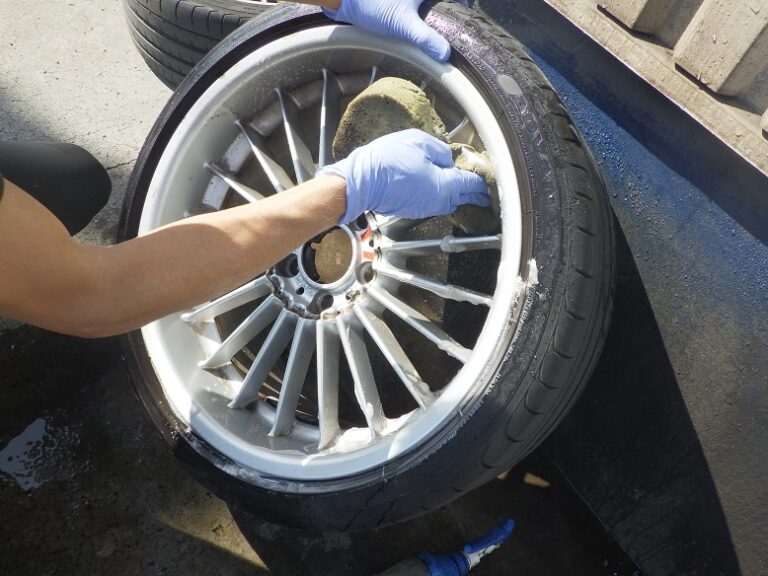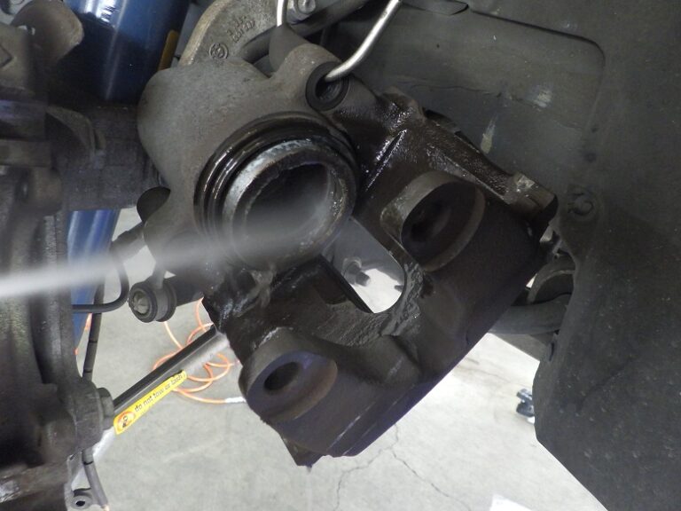 行いキャリパーまわりの洗浄とシールからのフルード滲みの点検、ハブ部分の錆取り防錆処理を行いホイールは、