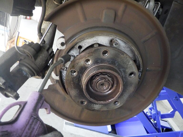 当店の車検整備においては、リアブレーキローターは、取り外してサイドブレーキシューまわりの洗浄と