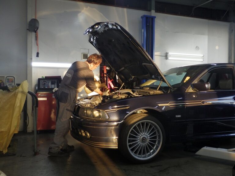 E39アルピナB10ツーリングのお客様の車検整備を作業しました。