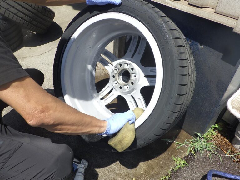 フルード滲みの点検を行いハブ部分の錆取り、防錆処理を行いホイールは、裏も表も綺麗に洗います