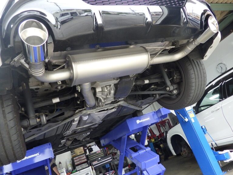 F40M135iのお客様にレムスマフラーアングルストレートカットテールの取り付けを作業しました。