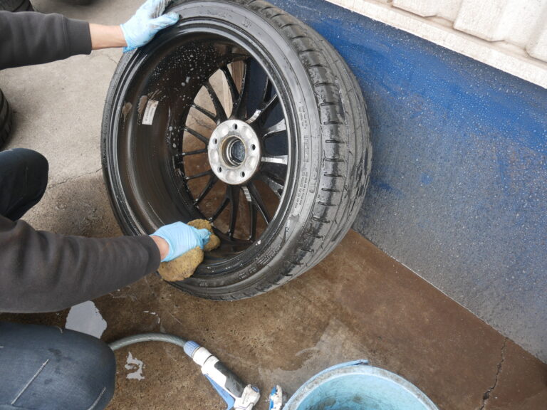 洗浄を行いハブ部分の錆取り、防錆処理を行いホイールは、裏も表も綺麗に洗います。