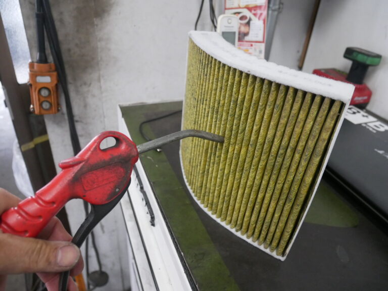 リフトアップ時に下回りの点検においては、オイル漏れ、ミッションフルードの漏れ、デフオイルの漏れ点検と