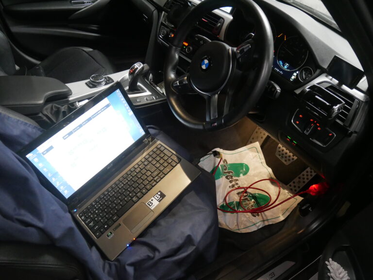最後にBMW専用テスター使用にてコンピューター診断を行いエラーチェック、消去、サービスインターバルリセットを行い