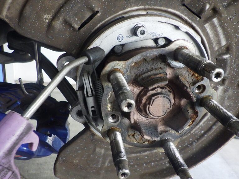 当店の車検整備においては、リアブレーキローターは、取り外してサイドブレーキシューまわりの洗浄と