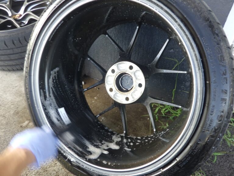 行いキャリパーまわりの洗浄とシールからのフルード滲みの点検、ハブ部分の錆取り防錆処理を行いホイールは、