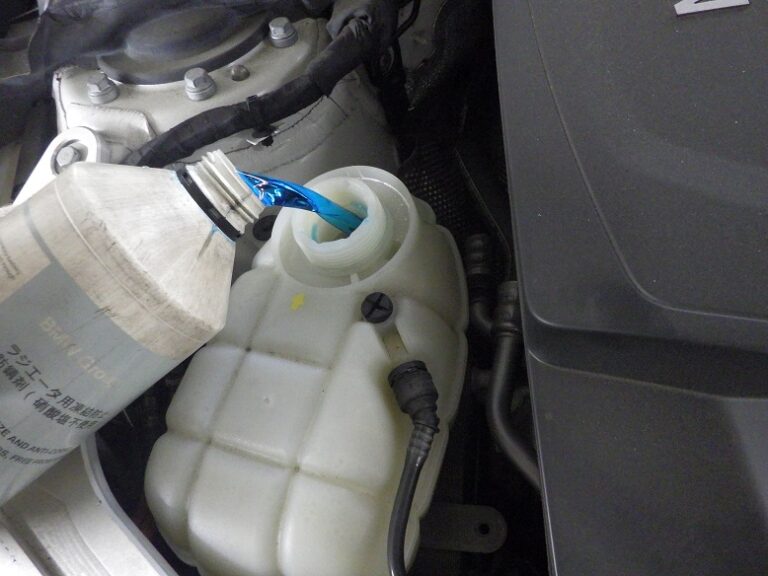 裏も表も綺麗に洗います。同時に車検毎に交換を推奨しておりますブレーキフルードとクーラントは、どちらも