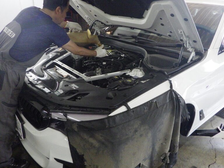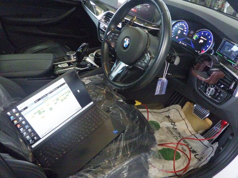 最後にBMW専用テスターを車両に接続してコンピューター診断を行いエラーチェック、消去サービスインターバルリセット