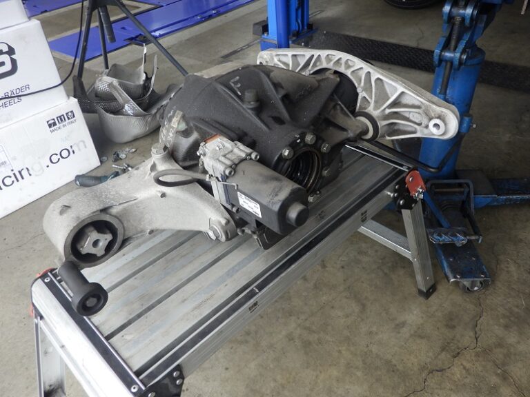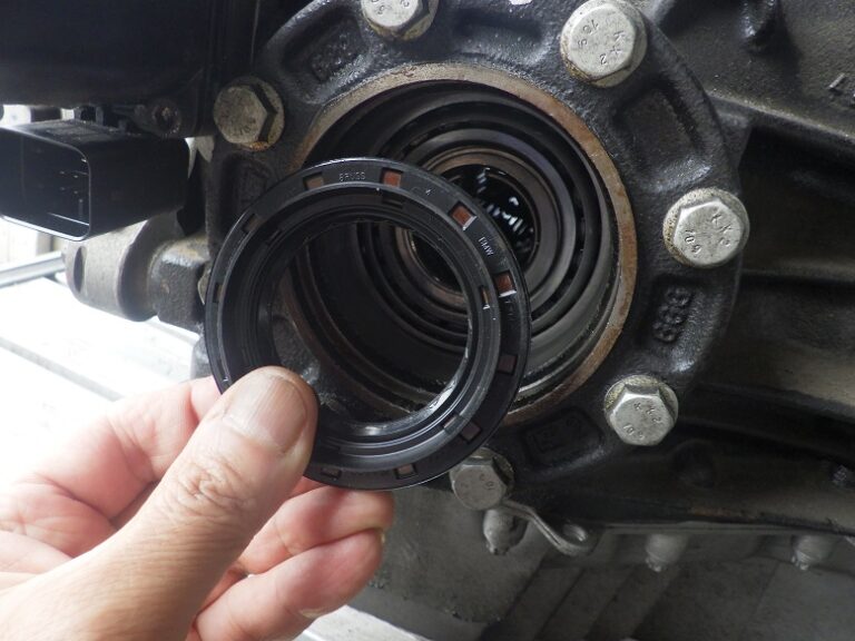 車両からデフ本体を下ろしてシールは、圧入で作業します。交換後は、漏れたデフオイルを洗浄してから