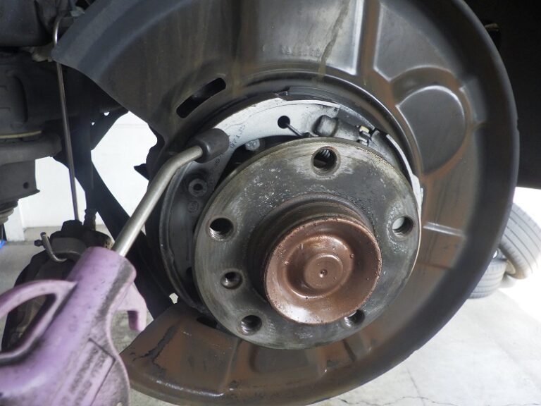 当店の車検整備においては、リアブレーキローターは、取り外してサイドブレーキシューまわりの洗浄と