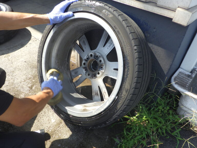 行いキャリパーまわりの洗浄とシールからのフルード滲みの点検、ハブ部分の錆取り防錆処理を行いホイールは、