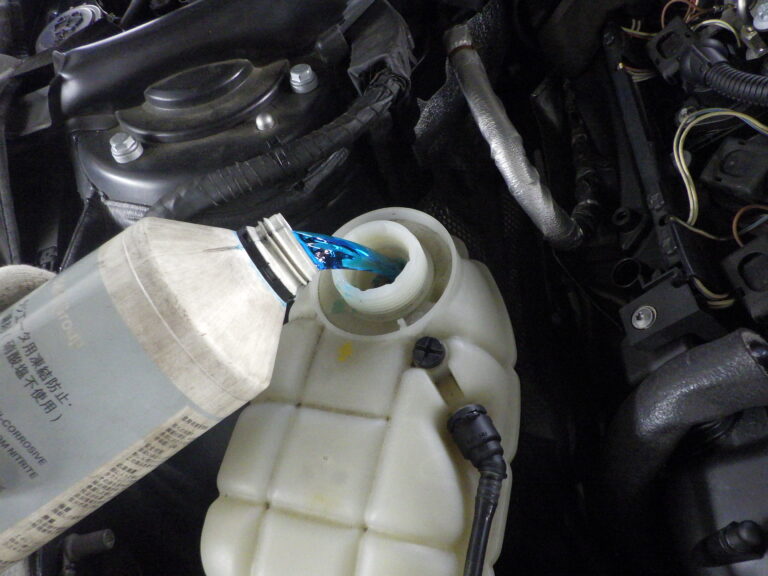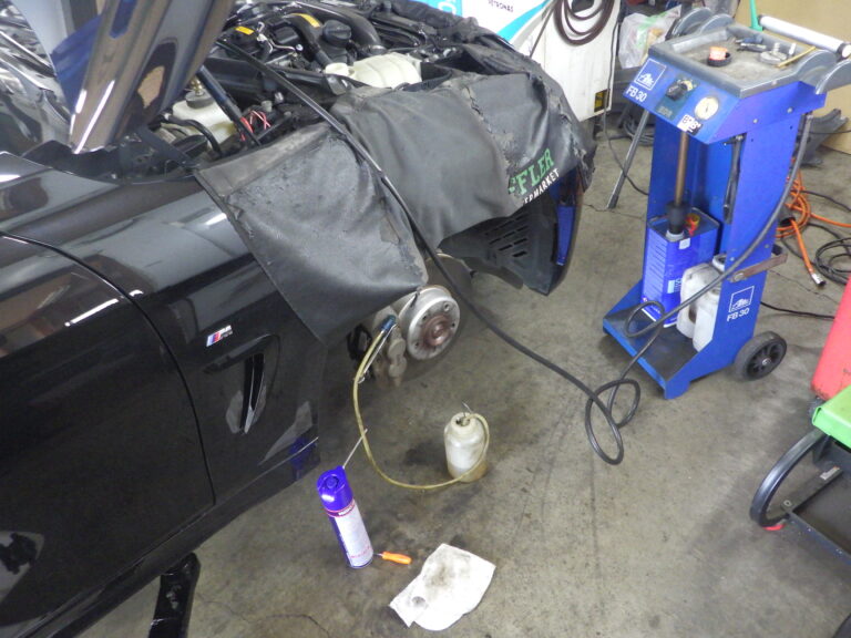 裏も表も綺麗に洗います。同時に車検毎に交換を推奨しておりますブレーキフルードとクーラントは、どちらも