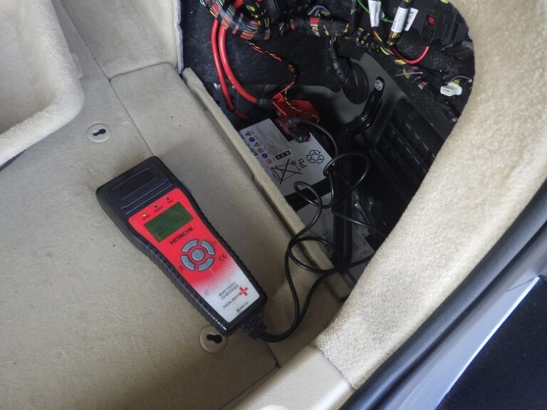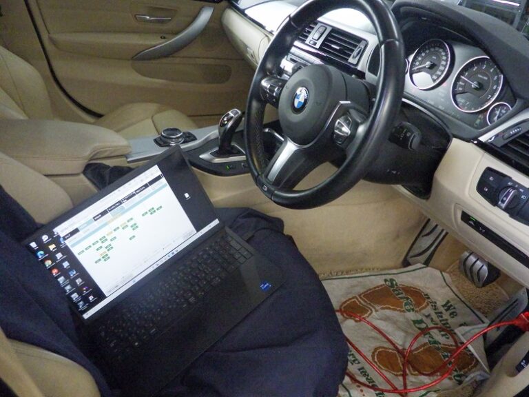 バッテリー診断を行いBMW専用テスターを車両に接続してコンピューター診断を行いエラーチェック、