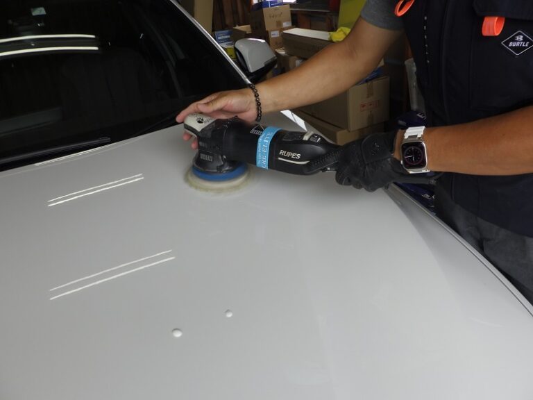 施工は、専門業者さんが当店の工場内で施工します。下地の磨きを行いコーティング剤を塗り乾燥してから
