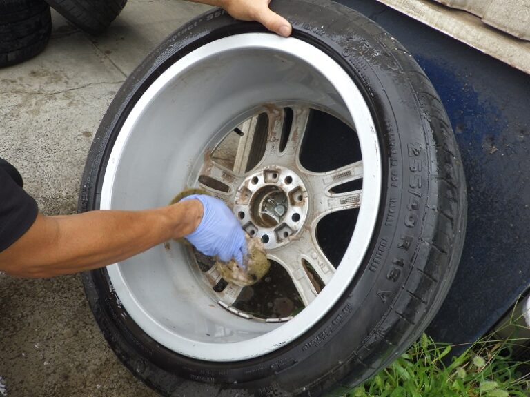 行いキャリパーまわりの洗浄とシールからのフルード滲みの点検、ハブ部分の錆取り防錆処理を行いホイールは、