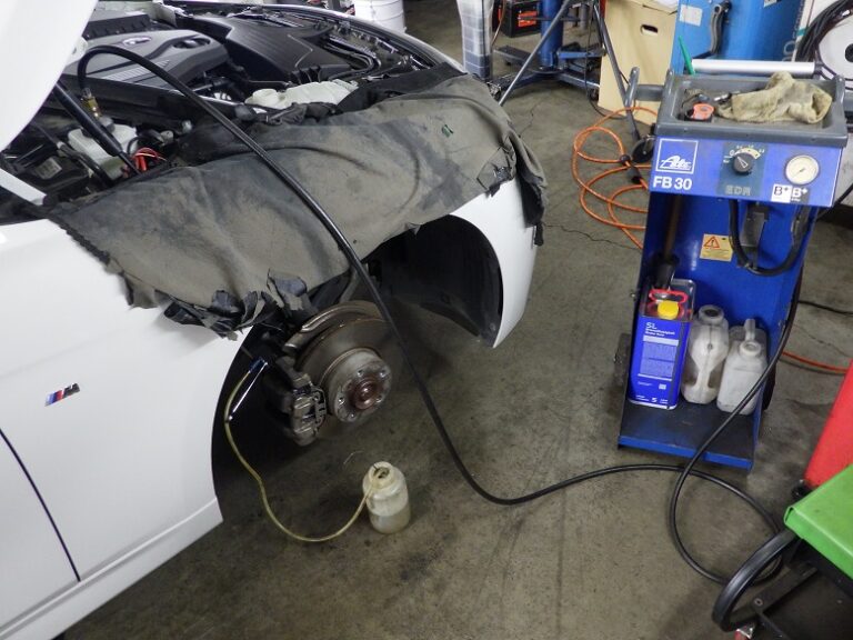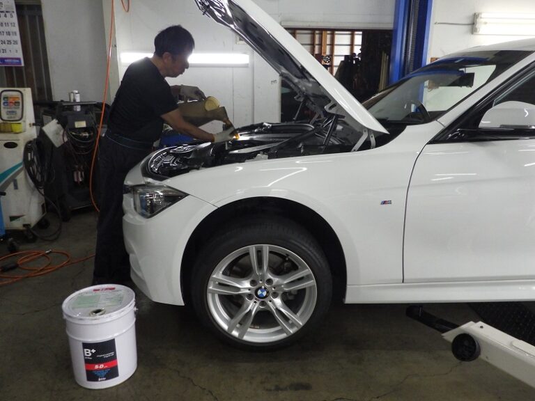 F30 320dのお客様の車検整備を作業しました。現在、当店の作業予約の空きは、8月5日からとなります
