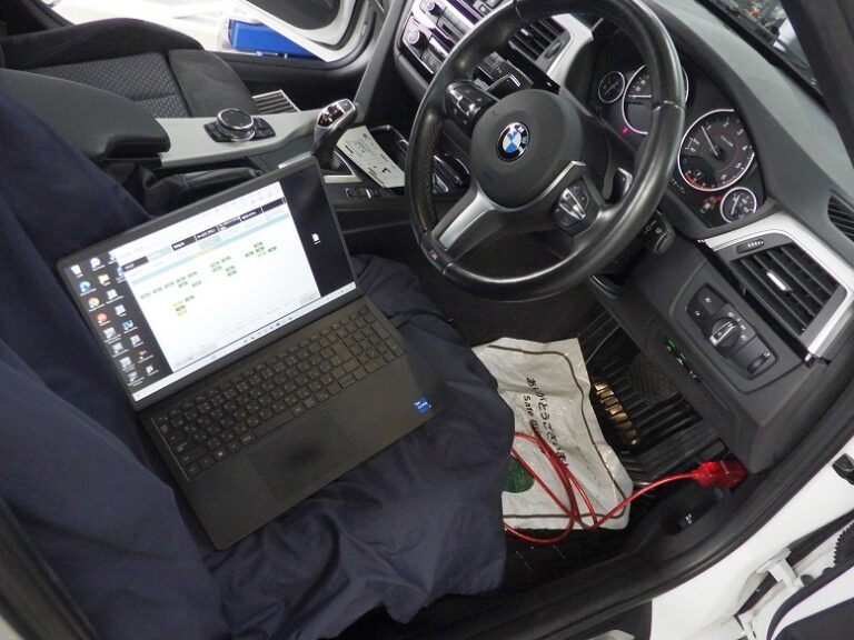 バッテリー診断を行いBMW専用テスターを車両に接続してコンピューター診断を行いエラーチェック、消去