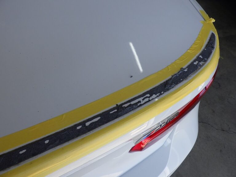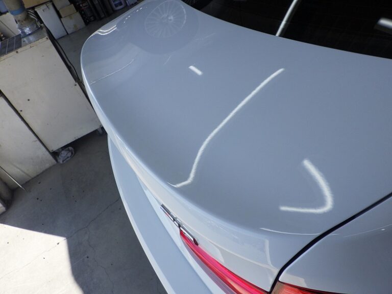 M3には、純正でトランクスポイラーが付いているので外しから作業します。純正の両面テープが残り