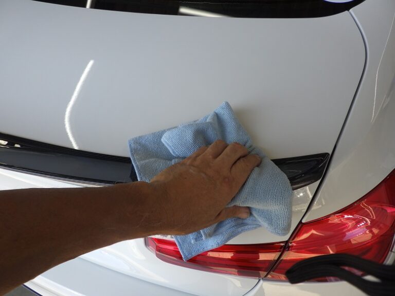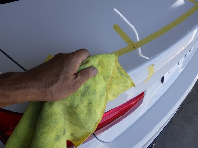 両面テープで取り付けします。取り付けしたらまわりの汚れ除去と簡易的なコーティング剤を塗り
