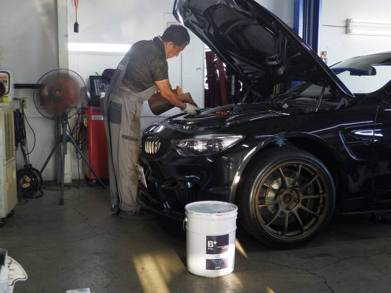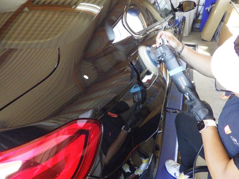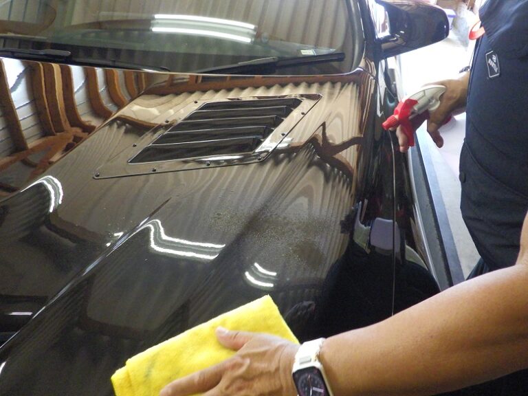 下地処理から時間をかけて徹底的に磨き上げてから細部の仕上げをしてから2液性のコーティング剤を塗り