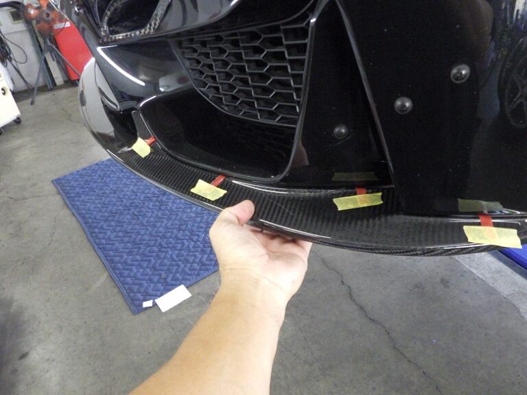 大人気の3Dデザイン製品カーボンフロントリップスポイラーの取り付けです。
