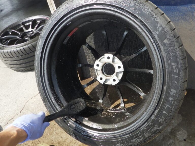 行いキャリパーまわりの洗浄とシールからのフルード滲みの点検、ハブ部分の錆取り防錆処理を行いホイールは、