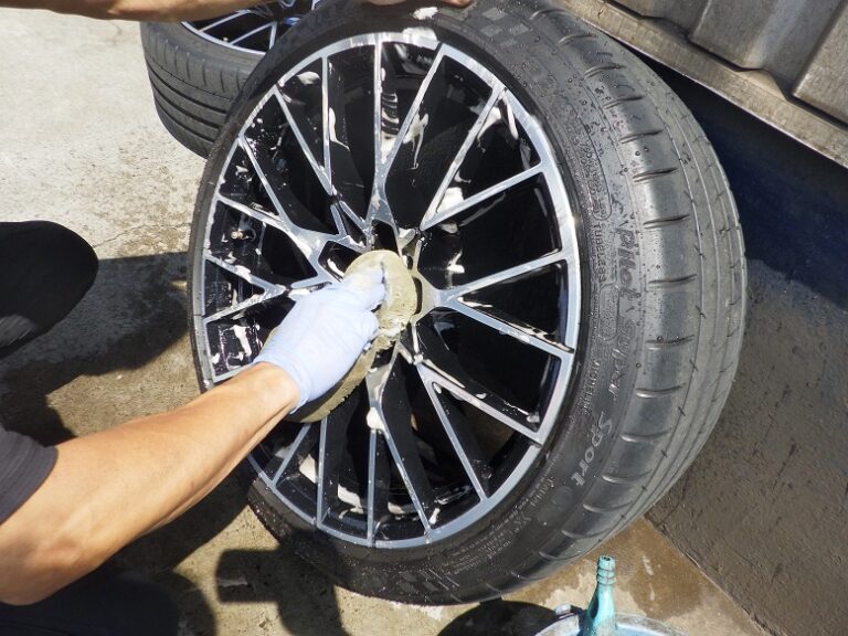 点検を行いハブ部分の錆取り、防錆処理をしてホイールは、内側、外側と綺麗に洗います。