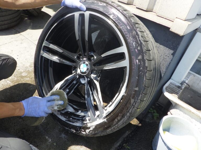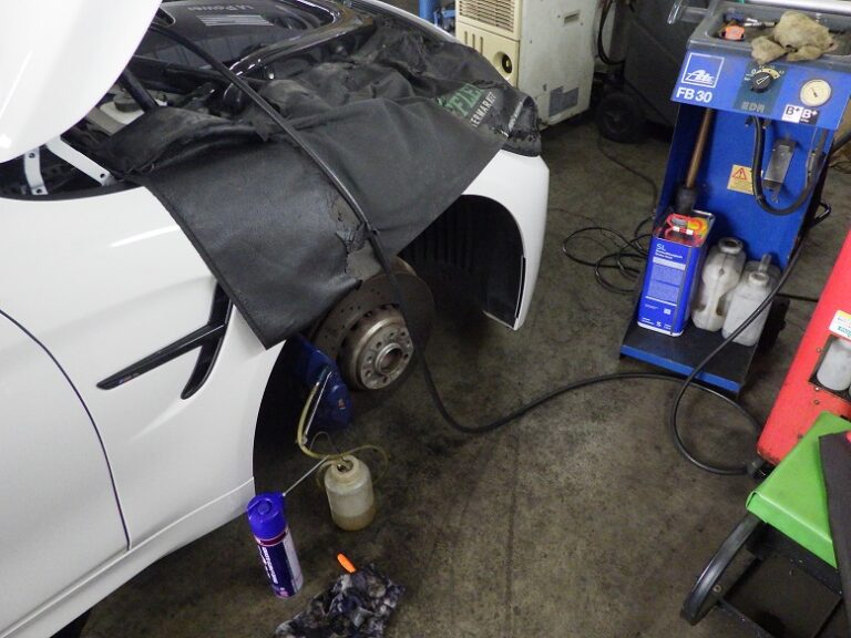 行いキャリパーまわりの洗浄とシールからのフルード滲みの点検、ハブ部分の錆取り防錆処理を行いホイールは、