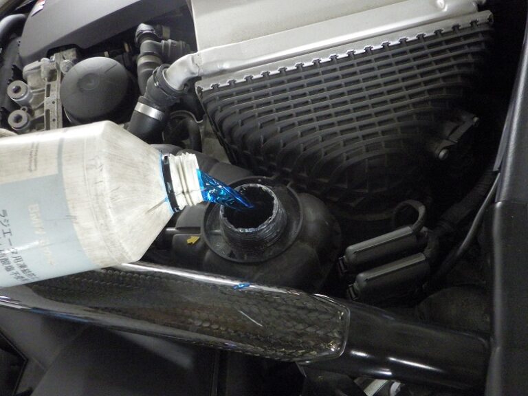 裏も表も綺麗に洗います。同時に車検毎に交換を推奨しておりますクーラントとブレーキフルードは、